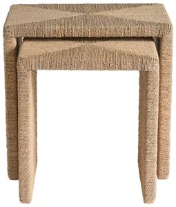 The abaca nesting tables are wrapped in natural abaca fiber, including a 24-inch large table and 19-inch small table for versatile use. These organic tables create flexible surfaces that can be arranged together or separately throughout your coastal living space.Read More