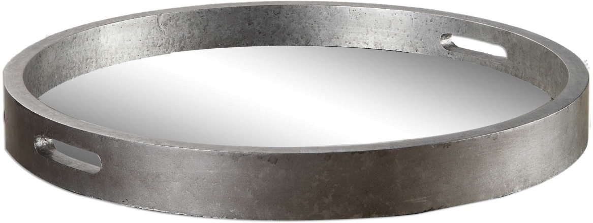 Tray with a lightly antiqued silver finish and antiqued mirror interior.