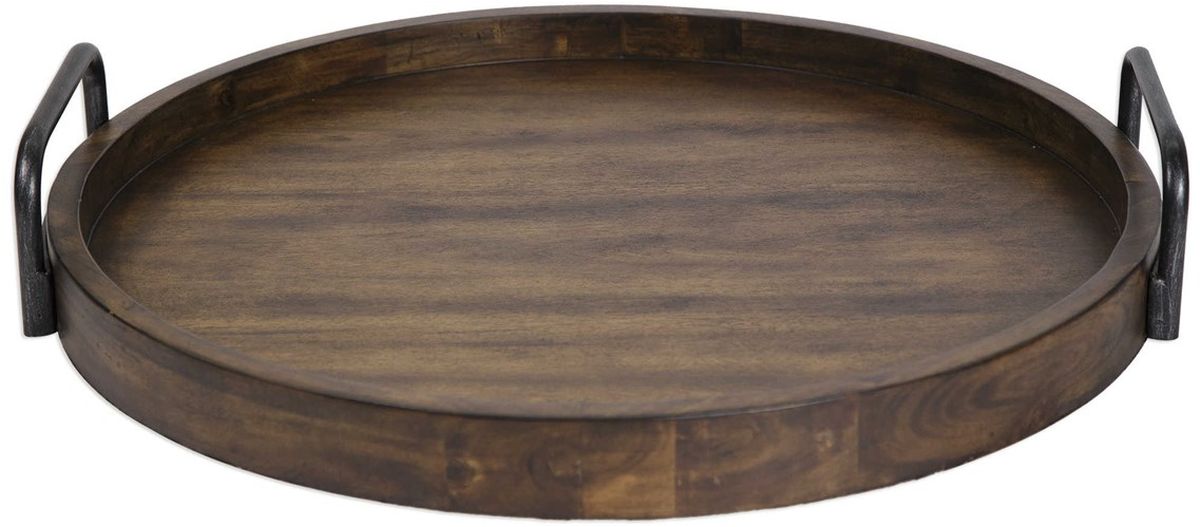 Classic Round Tray Featuring Acacia Wood With Iron Handles.Read More