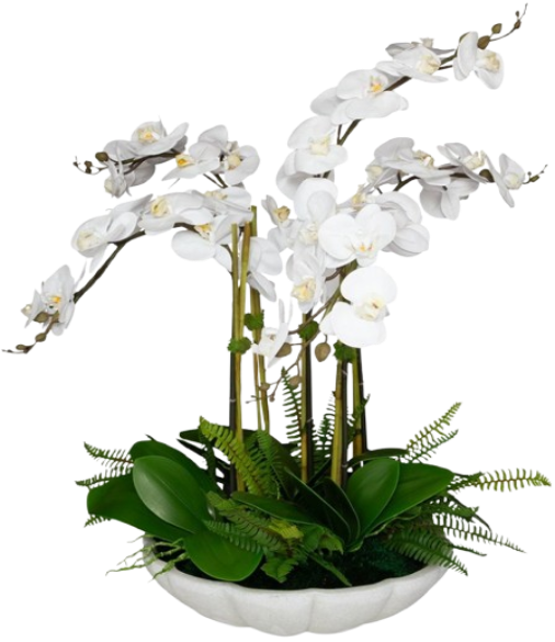 An elegant artificial arrangement that brings the freshness into your space without the need for maintenance. Adding a structured and textural accent, the Boston fern displays variegated tones of green contrasting with its sleek white textured ceramic pot.Read More