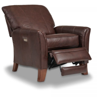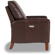 Why You’ll Love This Recliner Casually elegant, with an angled back, subtly flared arms and tall tapered wood legs, Riley is a welcome addition to any room. Especially when you realize this handsome chair has the power to recline. A silver-tone controller with a built-in USB port allows you to effortlessly adjust the back and legrest to your preferred position for relaxing, reading or watching TV. Whether you’re upright or reclined, Riley’s plush cushions provide extra softness and support. Unplug with our Go Cordless battery back upgrade to enjoy Riley’s power features anywhere in a room. Completely customizable, Riley features distinctive double-needle topstitching when upholstered in leather.