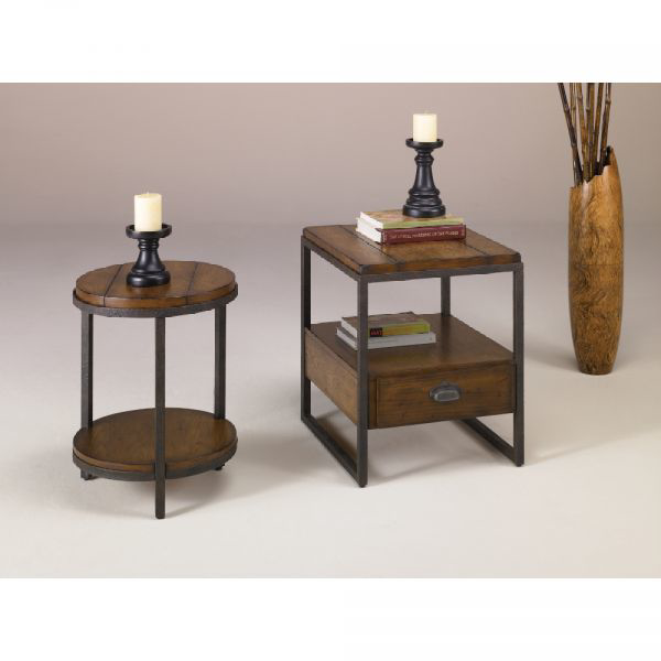 Crafted of Poplar solids and rustic/distressed Ash veneers with metal accents and a vintage umber finish. Transitional with simplistic lines, alluring metal and heavily distressed finish give this table an authentic hand-crafted feel.