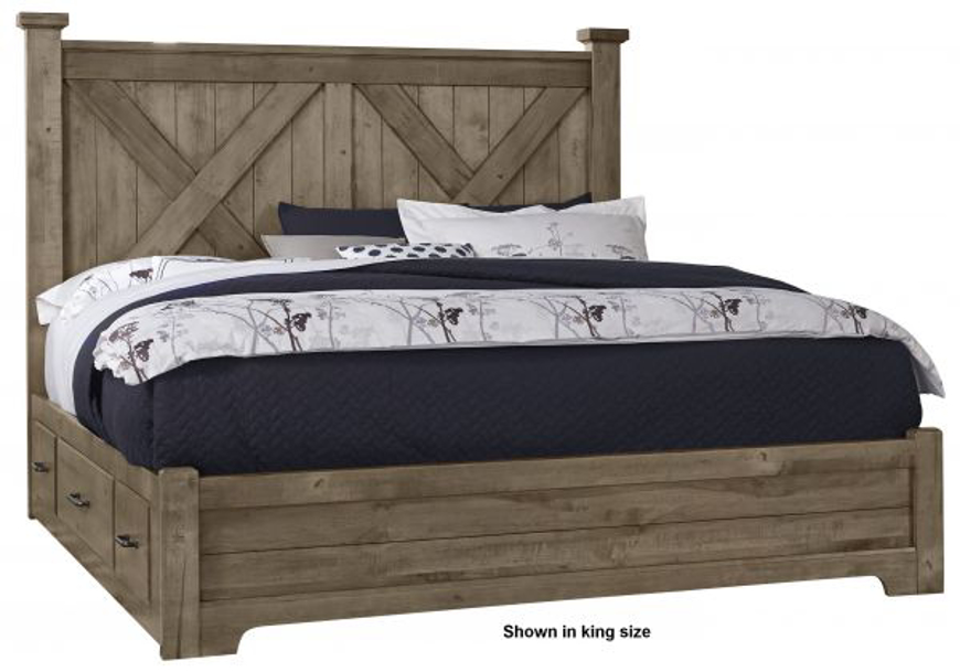 Give your bedroom the rustic charm you've been dreaming of with this solid wood queen bed. The X headboard is an iconic look that creates an inviting atmosphere you'll relish coming home to night after night. A total of six drawers, with three on either side of the bed offer up plenty of easily accessible storage for extra pillows and blankets or even clothing. The solid maple construction of the bed allows for you to rest easy knowing that this charming piece will last for years to come.