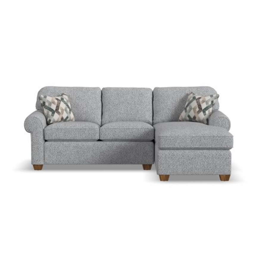 Product Description: Smooth edges, rolled arms, and exposed block legs give Thornton classic appeal as a living-area staple. Welt cording trims the back and seat cushions for a finishing touch. With multiple seating options, this roomy sectional takes the spotlight in large living spaces.