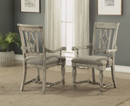 Product Description: The Plymouth upholstered arm dining chair boasts a shabby chic design with an overall graywash finish. Accented by coordinating dark dining table and buffet tops, Plymouth is ideal for those who like a bit of vintage design in their modern lives. This chair features a panel back with a diamond-shaped detail, and is a perfect seating choice to complement the Plymouth rectangular dining table or round pedestal dining table.