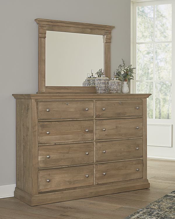 ARTISAN & POST - CARLISLE Complete your bedroom collection by placing this mirror on top of your dresser or chest. Featuring a frame crafted from solid wood and beveled glass; this mirror captures the perfect mix of traditional and rustic style. Earthiness and rich warmth gives the warm natural finish a polished look of authenticity.